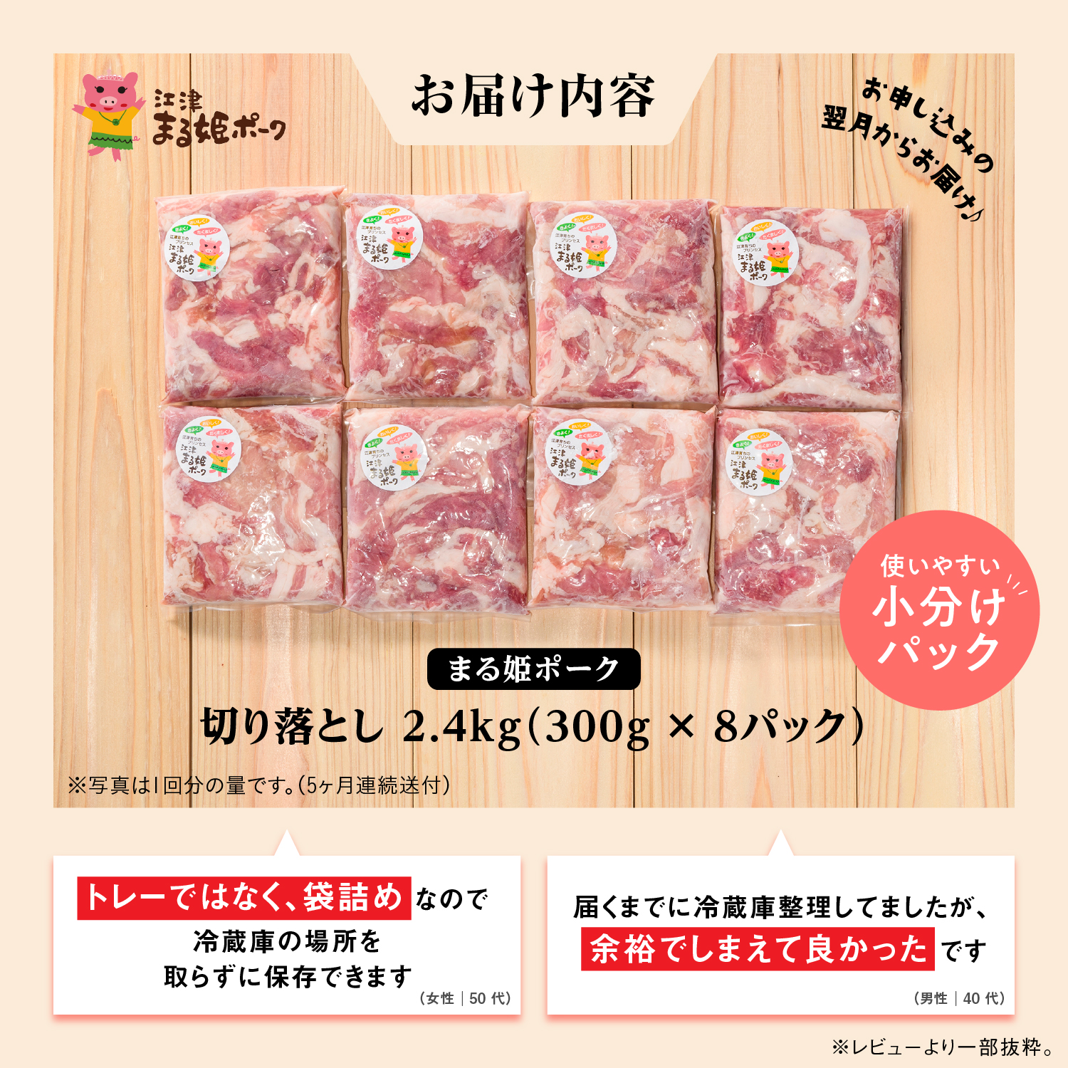 - 【12/31迄限定寄附額】定期便 5ヶ月 まる姫ポーク 切り落とし 2.4kg(300g×8パック)×5回(計12kg)【AK-20】|送料無料 国産 まる姫ポーク 豚肉 ぶた肉 ぶたにく 肉 切り落とし 料理 野菜炒め カレー シチュー 肉じゃが 豚丼 便利 多用途 小分け パック 定期便 江津市|