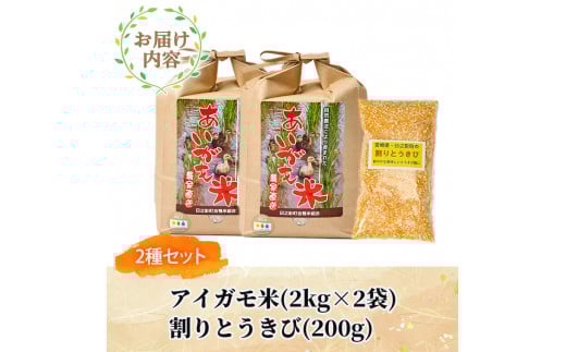- <数量限定>令和7年産アイガモ米(2kg×2袋)と割りとうきび(200g) 米 白米 精米 国産 ご飯【MU016】【日之影町村おこし総合産業(株)】