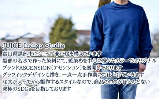 [№5313-7015]スウェット ASCENSION 藍染め スウェットB 1枚 XL トップス カットソー メンズ レディス 黒部の名水染め