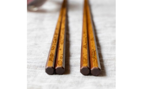 - 京都長岡京産 紋竹八角摺り漆箸 2膳セット|普段使い箸 来客用箸 贈り物ギフト 竹箸 天然竹 [1643]