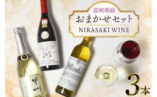 - ワイン 山梨 韮崎市産ワイン おまかせ 3本 セット NS-0013 [韮崎翠緑 山梨県 韮崎市 20745301] 赤ワイン 白ワイン ワインセット wine お酒 酒 飲み比べ 飲み比べセット 詰め合わせ 山梨ワイン 甲州ワイン