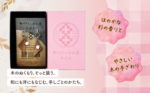 テレビで紹介された女性の伝統工芸士が作りました!【曲げわっぱアクセサリー】カービングタイプ イヤリング真鍮タイプ 65P6018 / 東北 秋田 大館 曲げわっぱ まげわっぱ マゲワッパ イヤリング ピアス アクセサリー 木製品 天然杉 工芸品 伝統的工芸品 伝統工芸品 木製 木製品 日本製 秋田杉 木 軽量 シンプル 職人 贈り物 贈答品 ギフト プレゼント 記念日 誕生日 祝い