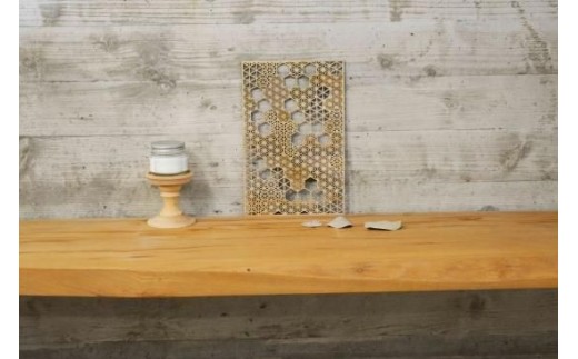 T1-1-8 智頭杉のウォールアートパネル 組子文様/波/四角(L)