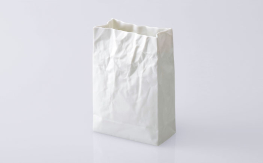 - 【瀬戸焼】ニュークリンクルスーパーバッグ#2 花器 ホワイト 【セラミック・ジャパン】 / 花瓶 花器 かびん おしゃれ インテリア 花 かびん フラワーベース ギフト プレゼント / 瀬戸市 [BBBC002]
