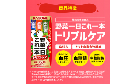 - 【定期便 6ヶ月】 カゴメ 野菜一日これ一本 トリプルケア 96本×6回〈 野菜ジュース 紙パック 定期便 野菜一日これ一本トリプルケア 野菜100% 血糖値 中性脂肪 血圧 高血圧 対策 サポート 機能性表示食品 野菜 100% ジュース 飲料 健康 砂糖 食塩 栄養強化剤 不使用 野菜飲料 ドリンク 備蓄 長期保存 防災 飲み物 かごめ kagome KAGOME 〉