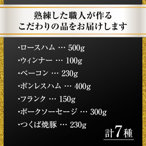 - 【贈答用(熨斗対応可)】 筑波ハム バラエティ ブロック 7品 ( ハム ベーコン ソーセージ 焼豚 ) 『常陸の輝き』 茨城県産 ブランド豚 銘柄豚 ( 茨城県共通返礼品 ) ロースハム ボンレスハム フランク ウィンナー 豚 ポーク ステーキ 肉 お肉 [EN008sa]