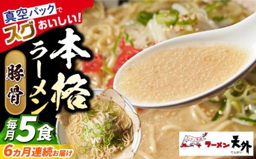 【6回定期便】 ラーメン 岐阜老舗店天外 豚骨 5食セット 簡単調理 自宅で本格 主婦応援 真空パック お取り寄せ ご当地 グルメ 手軽 拉麺 らーめん 時短 麺 とんこつ トンコツ 岐阜県 おすすめ 人気 6回 定期便 5食 セット 詰め合わせ チャーシュー メンマ スープ付き 老舗の味 ギフト プレゼント 贈り物 贈答 お返し 岐阜市/カツヤプロジェクト [ANCT013]