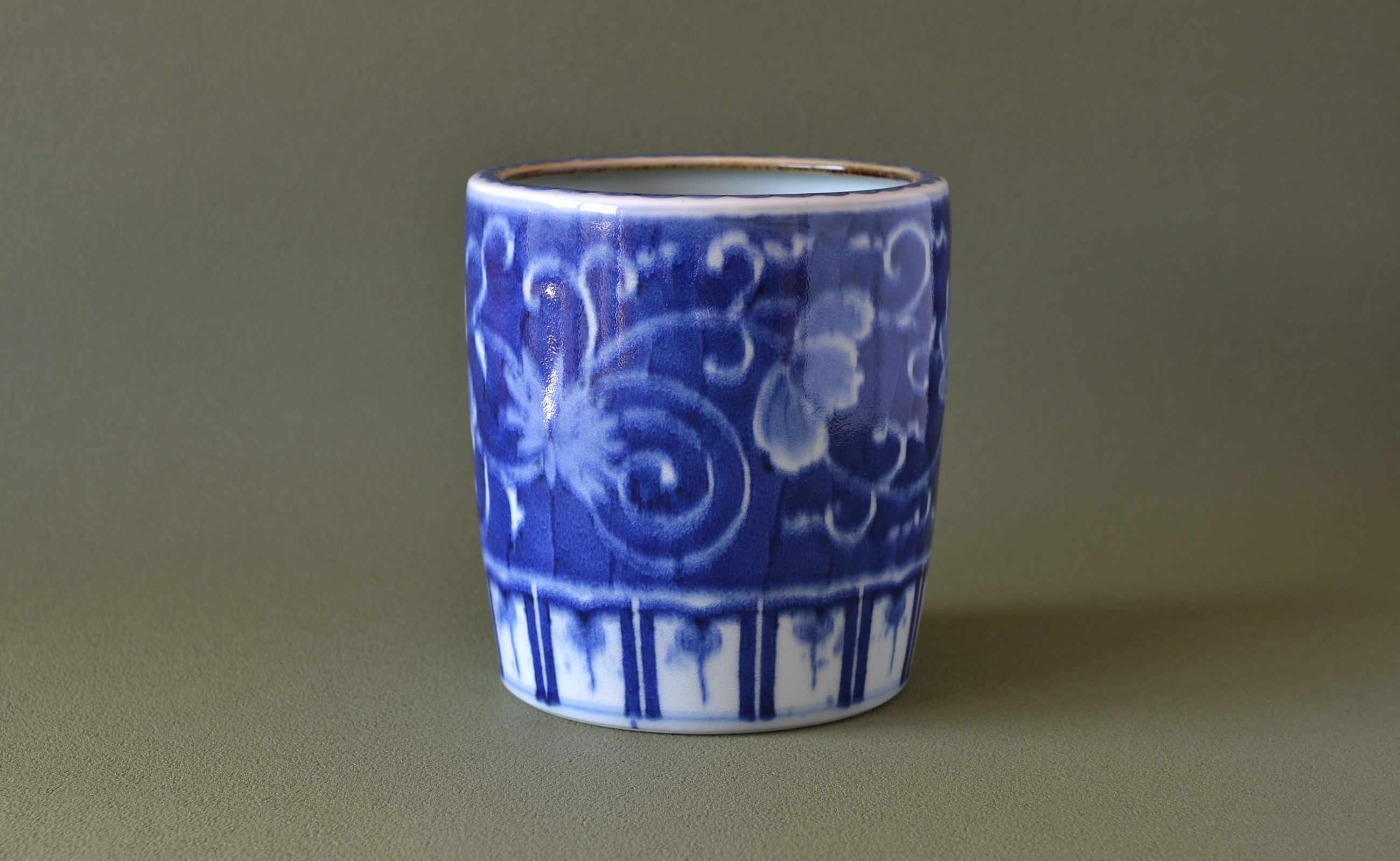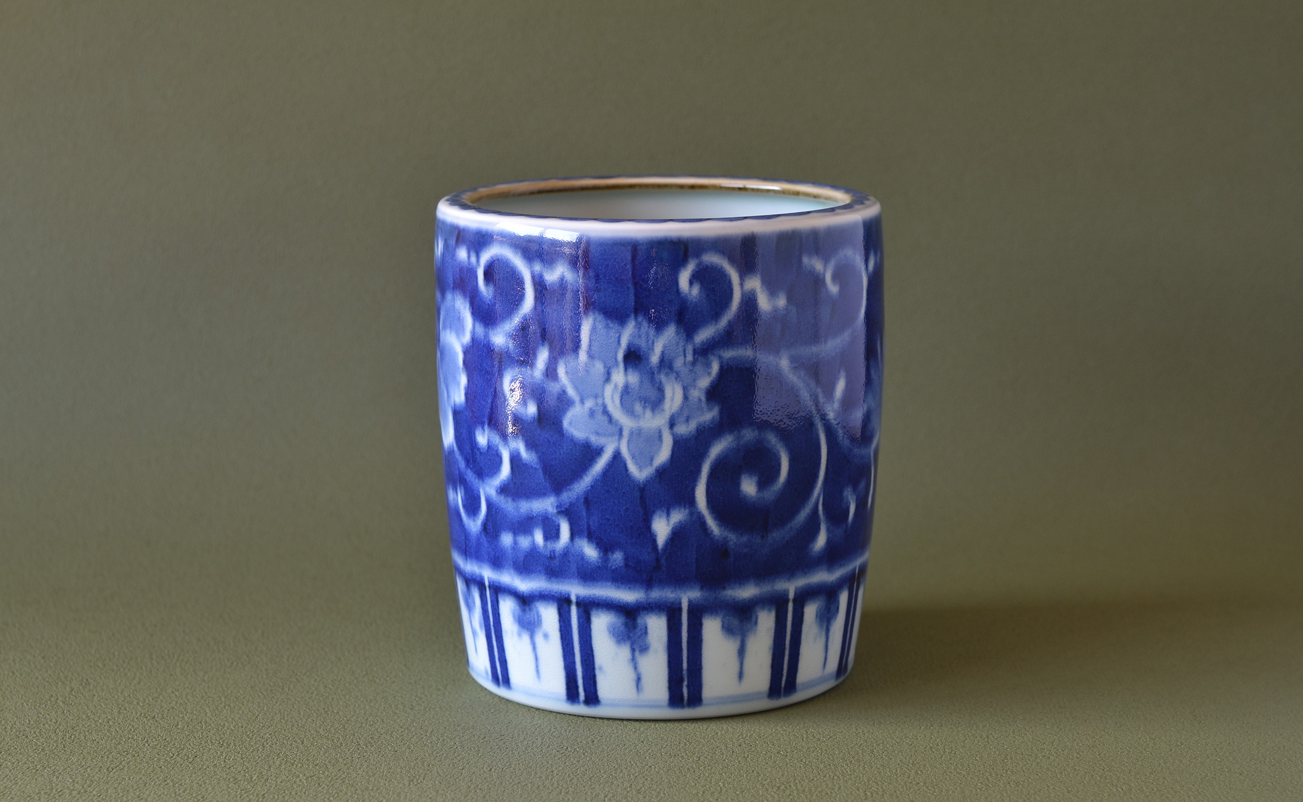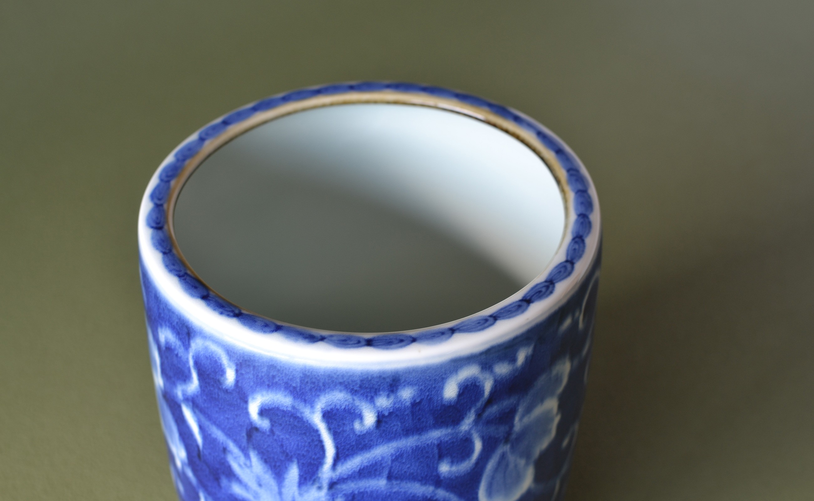 有田焼 福泉窯 染付地紋牡丹唐草 火鉢筒型ワインクーラー【渕上陶磁器 / FUCHIGAMI TOJIKI】 一点物 手描き インテリア 花器 火鉢 ワインクーラー 24万円 A240-9
