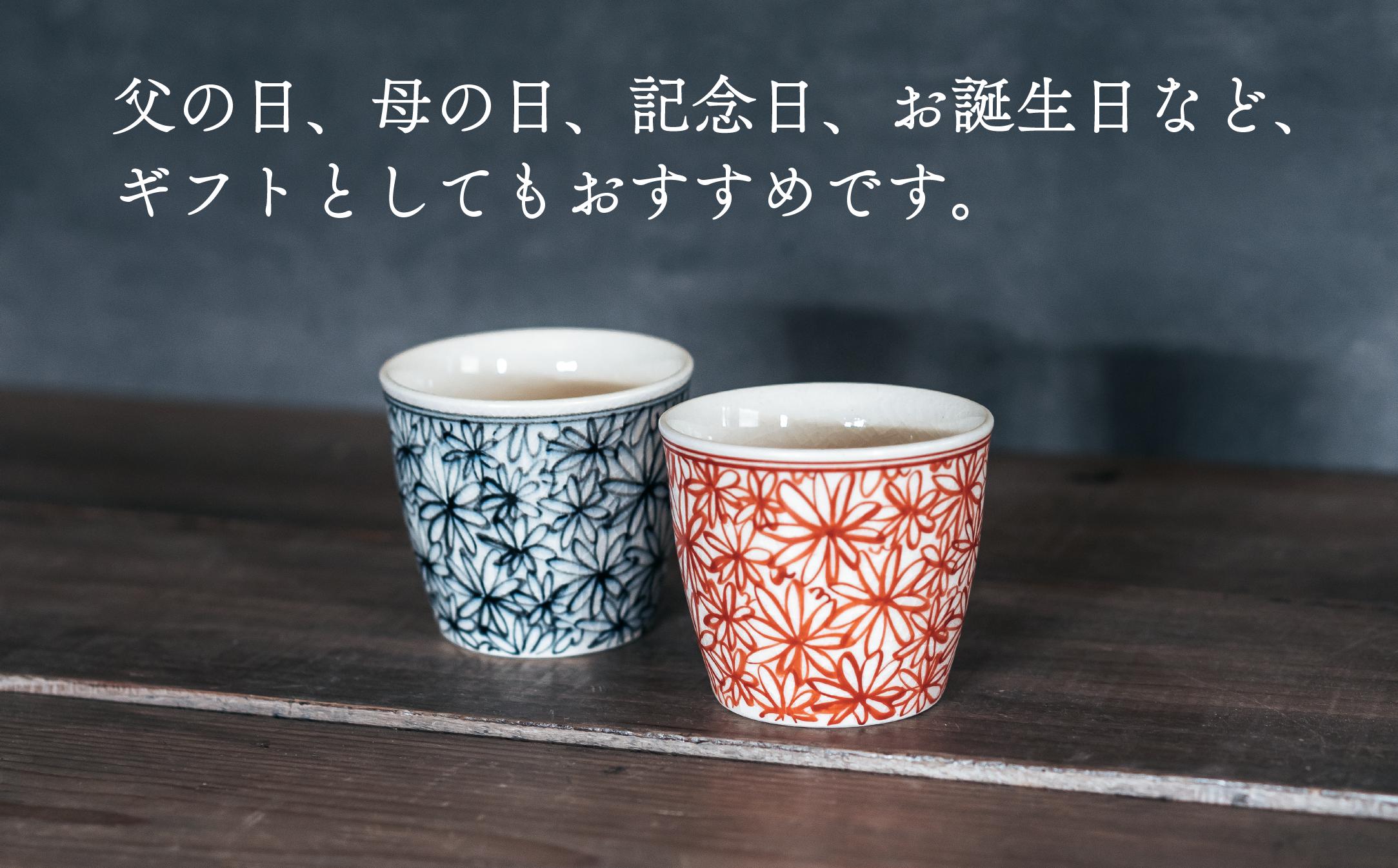 - 喜鶴製陶【有田焼】蕎麦ちょこ 花詰 2個(赤・青 各1個)ペアセット 喜右エ門シリーズ 35000円 3.5万円 A35-551