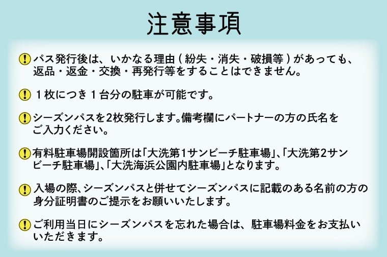 - 【パートナーパス】令和8年度 大洗 サンビーチ 町営駐車場 シーズンパス (定期利用券) ×2枚 海水浴 サーフィン 潮干狩り レジャー 茨城県 大洗町
