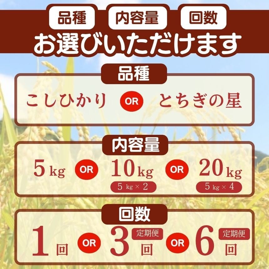- 選べる 定期便 新米 米 お米 こめ コメ こしひかり コシヒカリ とちぎの星 1回 3回 5kg 10kg 20kg | 2025年 2025年米 令和7年米 秋 白米 ごはん ご飯 小分け 人気 おいしい 旨い おにぎり おむすび お弁当 限定 栃木県共通返礼品 栃木県 下野市 送料無料