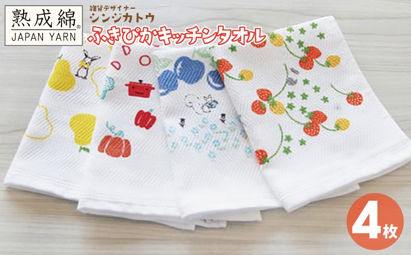 knt0001 シンジカトウ「ふきぴか キッチンタオル(プリント)」セット【泉州タオル 国産 吸水 普段使い 無地 シンプル 日用品 家族 ファミリー】