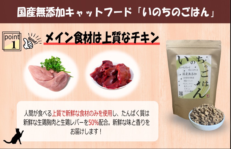 - 099H3600 国産無添加 キャットフード 500g「いのちのごはん」タンパク質 50%配合タイプ【猫 ねこ ペットフード チキン 手作り ヒューマングレード 国産】
