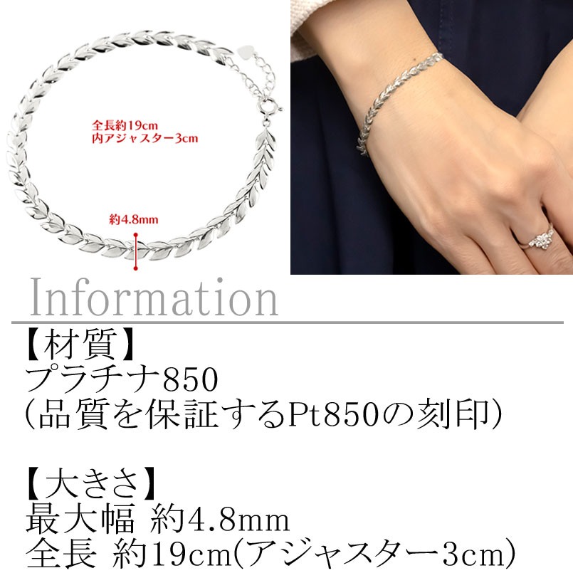 プラチナ ブレスレット チェーン 19cm リーフ 葉っぱ 金属アレルギー 対応 pt850 アジャスター ジュエリー シンプル 地金 プレゼント 人気 普段 使い おしゃれ250227bd400p SWAA257-pt