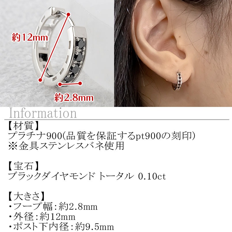 - プラチナ フープ ピアス 片耳 ブラックダイヤモンド フープピアス ダイヤ 0.10ct 中折れ式 金属アレルギー 対応 pt900 リングピアス ジュエリー シンプル 人気 普段 使い250401bd200pu SWAA281-bdp
