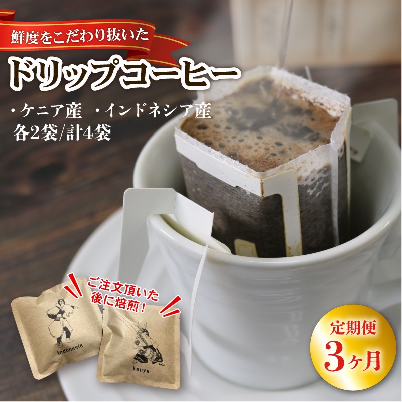 3ヶ月 定期便 ドリップパック4袋 (ケニア/インドネシア 各2袋) コーヒー coffee 珈琲 リッチ ブレンド 飲み物 飲料 [moku7000_D_1]