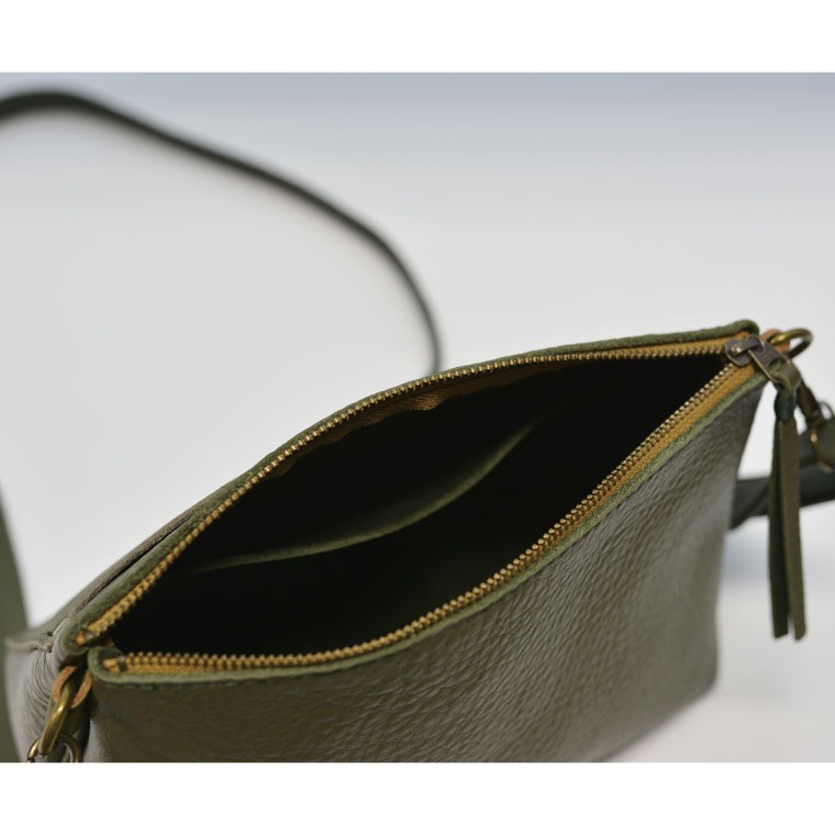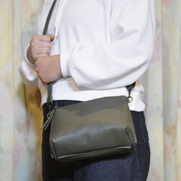 益子の革工房maharoのショルダーポーチ ワイド(S)オリーブグリーン|栃木県 益子町 ふるさと納税 ショルダーポーチ ワイド 牛革 手作り(AX108-4)