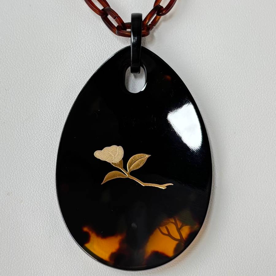 - <うるしアートはりや>椿に鷽蒔絵べっ甲ペンダント