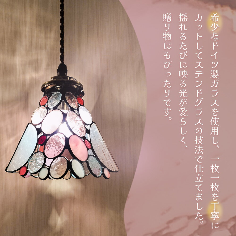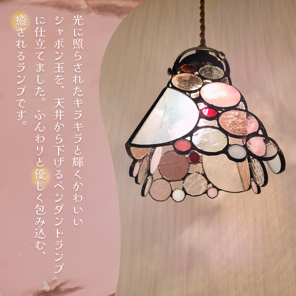 【ふるさと納税】ステンドグラス《シャボン玉ペンダントランプ》ピンク【光 癒し 可愛い ドイツ製 ガラス カット 技法 映り込み お揃い ランプ プレゼント インテリア おしゃれ デザイン】K003143