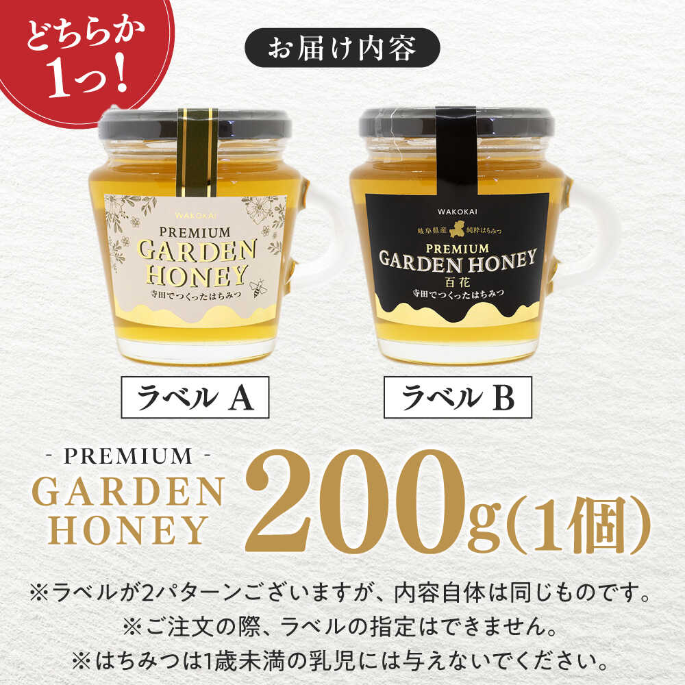 【ふるさと納税】はちみつ PREMIUM GARDEN HONEY 200g はちみつ 蜂蜜 健康 ハチミツ パン ぱん トースト ハニー ヨーグルト honey 岐阜 国産 美容 朝食 養蜂 ギフト 人気 瓶詰め 日本産 料理 紅茶 スイーツ 調味料 手土産 濃厚 まろやか 岐阜市 / 和光会グループ[ANHA002]