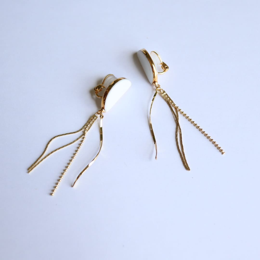 - 【ふるさと納税】白磁半月 イヤリング【6.kiln】アクセサリー 白磁 有田焼 清六窯 35000円 3.5万円 A35-584