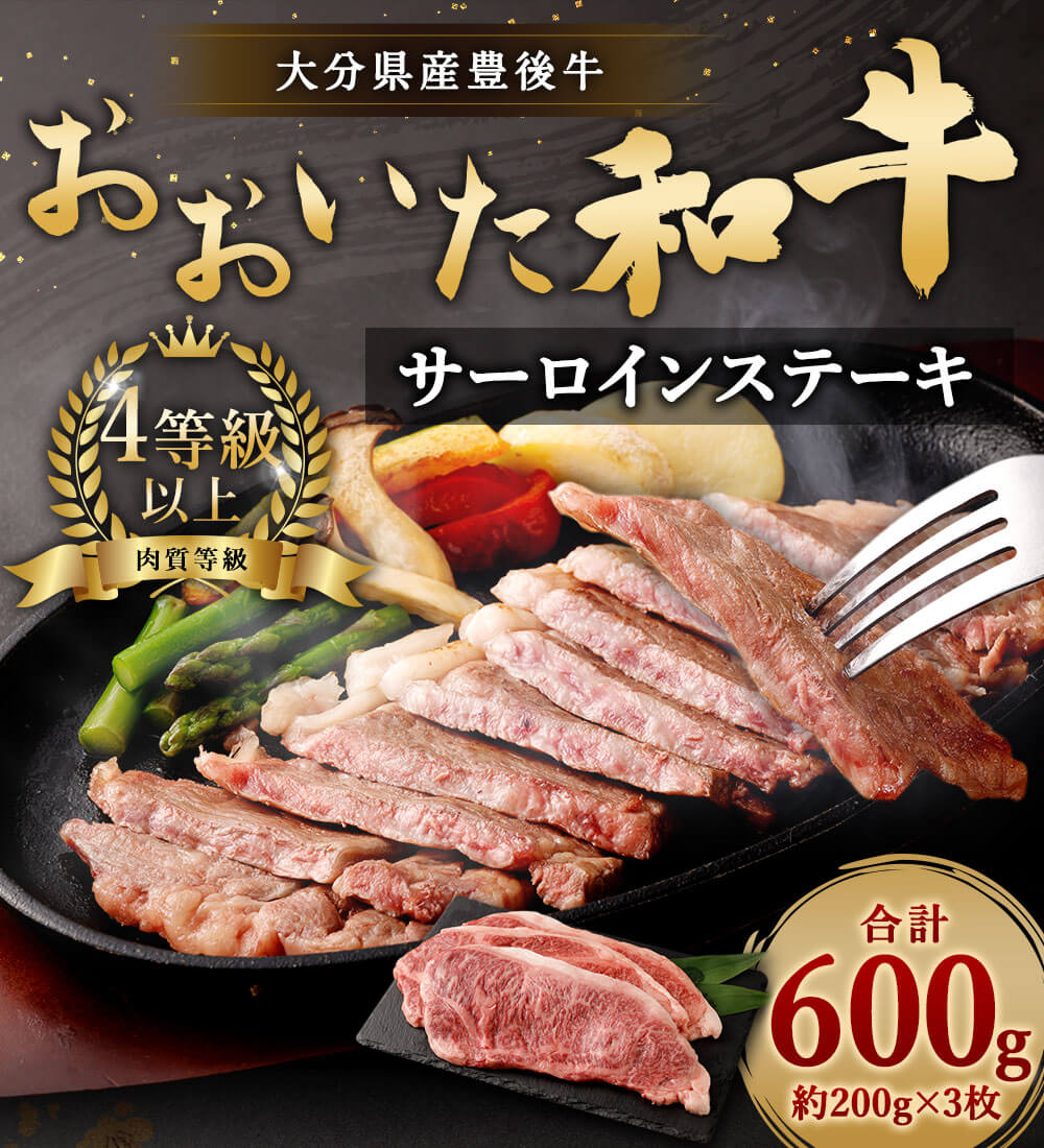 - 【ふるさと納税】大分県産 豊後牛 サーロインステーキ 200g×3枚 合計600g おおいた和牛 4等級以上 黒毛和牛 和牛 牛肉 お肉 肉 ステーキ 真空パック 国産牛 冷蔵 送料無料