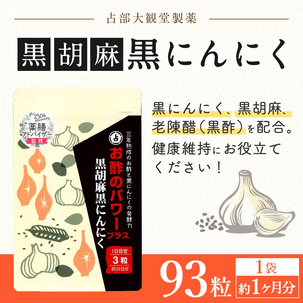 - 【ふるさと納税】お酢のパワープラス 黒胡麻 黒にんにく 1袋 93粒 約1ヶ月分 サプリメント 健康食品 にんにく ニンニク 黒酢 送料無料