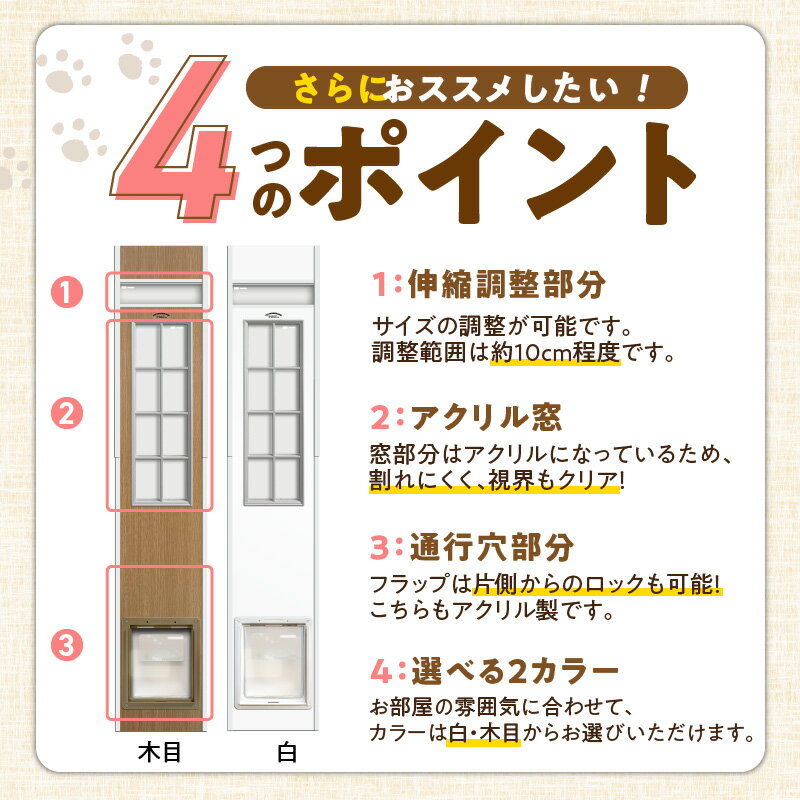 【ふるさと納税】中型犬用 フリードア 白 木目 工事不要 パネル一体型 ペットドア 賃貸可 サッシ 引き戸レール 取付 簡単 手動 ロック機能付き 明かり窓 高さ調整可能 受注生産 木製品 日本製 国産 ペット用品 お取り寄せ 福岡県 久留米市 送料無料