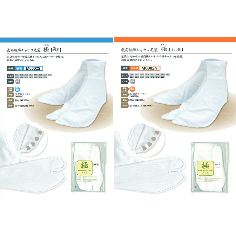 【ふるさと納税】最高級綿キャラコ足袋 極 4枚こはぜ 晒/ネル裏セット| 徳島 鳴門 高級 靴下 キャラコ