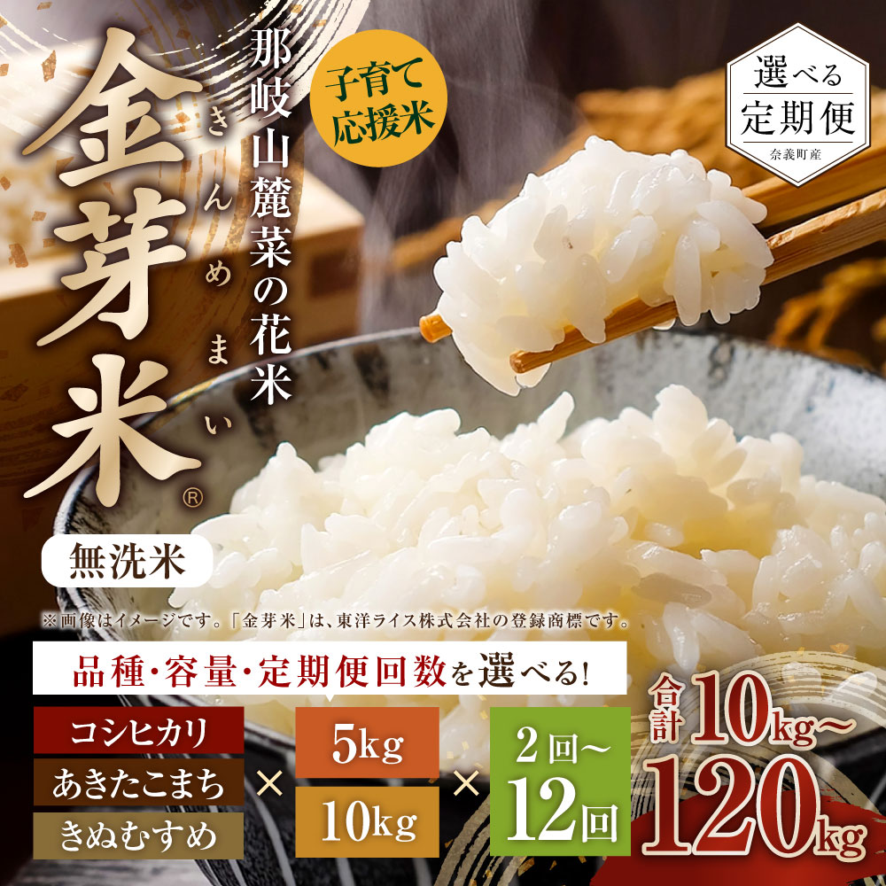 - 【ふるさと納税】〈選べる品種・容量・定期便回数〉子育て応援米【令和7年産】那岐山麓菜の花米金芽米 無洗米(コシヒカリ/あきたこまち/きぬむすめ)計5kg または 計10kg 白米 米 岡山県 奈義町 送料無料