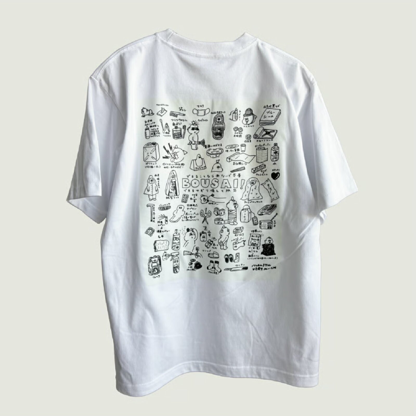 - 【ふるさと納税】【サイズが選べる】暗闇で光る蓄光プリント BOUSAI Tシャツ【2026年1月以降順次発送】 | 饅頭VERYMUCH 能登 復興支援 防災 災害 ファッション 半袖 S M L XL 綿100% ポップ かわいい イラスト イラストレーター デザイナー