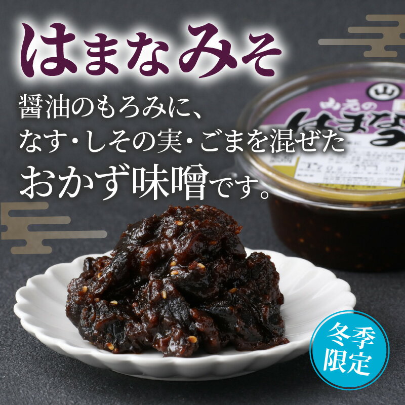 - 【ふるさと納税】越前大野 山元醤油の「はまなみそ3個」+「なんばみそ1個」+「ゆずみそ1個」計5個【3種食べ比べセット】[A-040007] | お歳暮 味噌 みそ ご飯のお供 おつまみ ディップ プレゼント お中元 醗酵食品 詰め合わせ