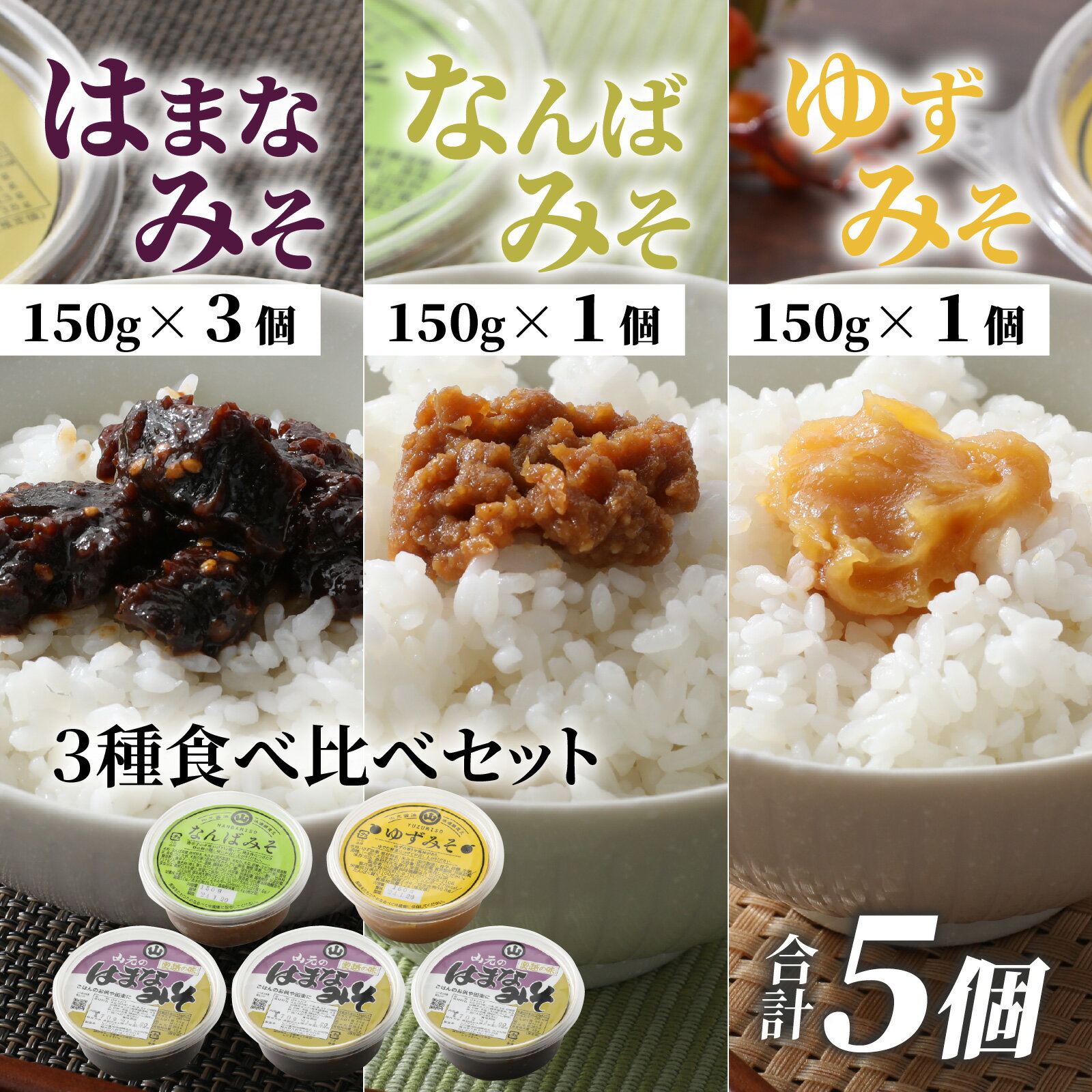 【ふるさと納税】越前大野 山元醤油の「はまなみそ3個」+「なんばみそ1個」+「ゆずみそ1個」計5個【3種食べ比べセット】[A-040007] | お歳暮 味噌 みそ ご飯のお供 おつまみ ディップ プレゼント お中元 醗酵食品 詰め合わせ
