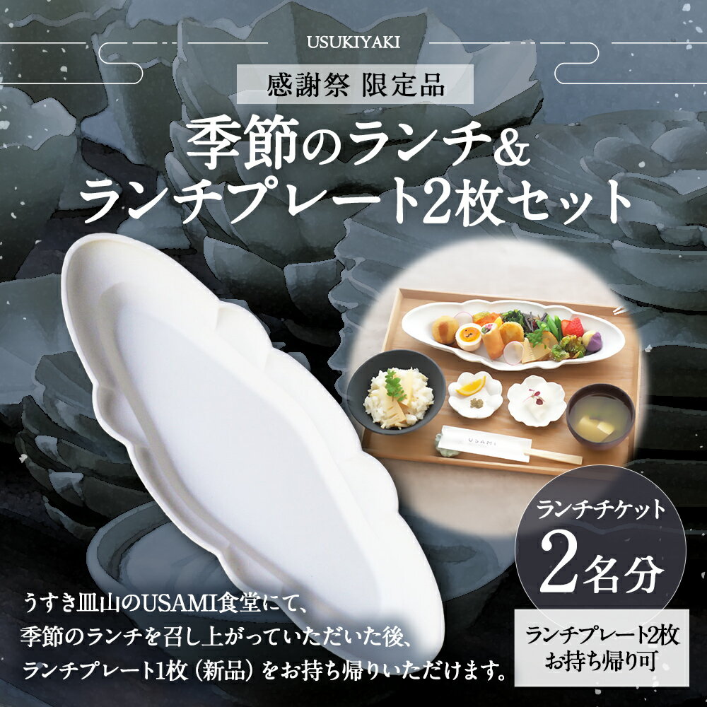 【ふるさと納税】【感謝祭*限定品】季節のランチ(ペア)&ランチプレート(2枚)セット 2名様分 臼杵焼 白磁 型打ち 稜花リム皿 お食事券 チケット 商品券 利用券 食器 工芸品 日本製 大分県 臼杵市 送料無料