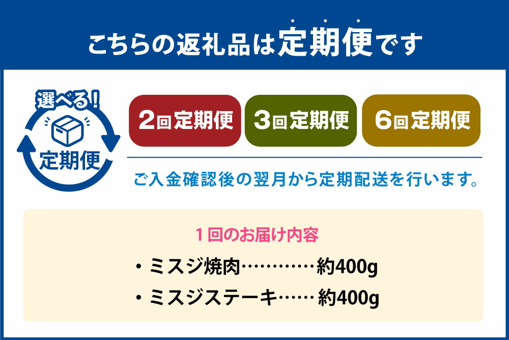 - 【ふるさと納税】<選べる定期便>【ミスジ食べ比べ!】おおいた和牛 ミスジ 焼肉・ステーキ セット 1回あたり計約800g(各約400g×2種) 1ヶ月毎 2回 3回 6回 和牛 牛肉 お肉 みすじ ウデ 希少部位 焼き肉 詰め合わせ 冷凍 大分県産 国産 九州 大分県 竹田市 送料無料