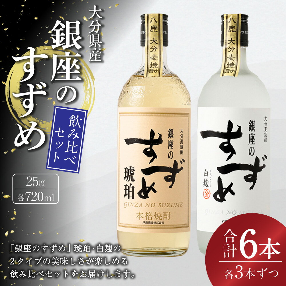 【ふるさと納税】25度 銀座のすずめ(琥珀・白麹)2種 飲み比べ セット 各720ml×3本 合計6本(4.32L) 焼酎 麦焼酎 麦 麦麹 お酒 酒 アルコール 瓶 国産 大分県 九重町 送料無料