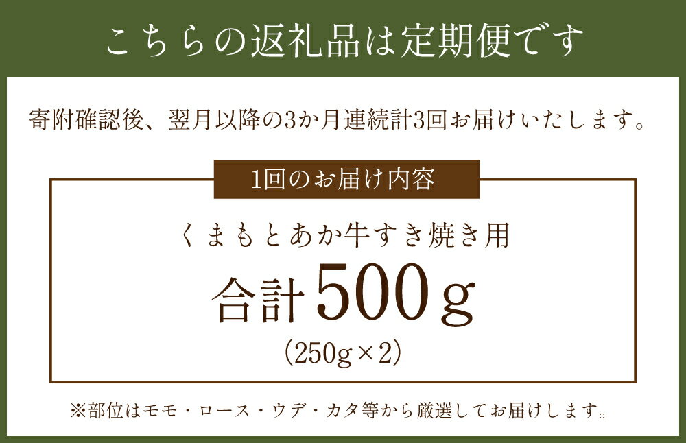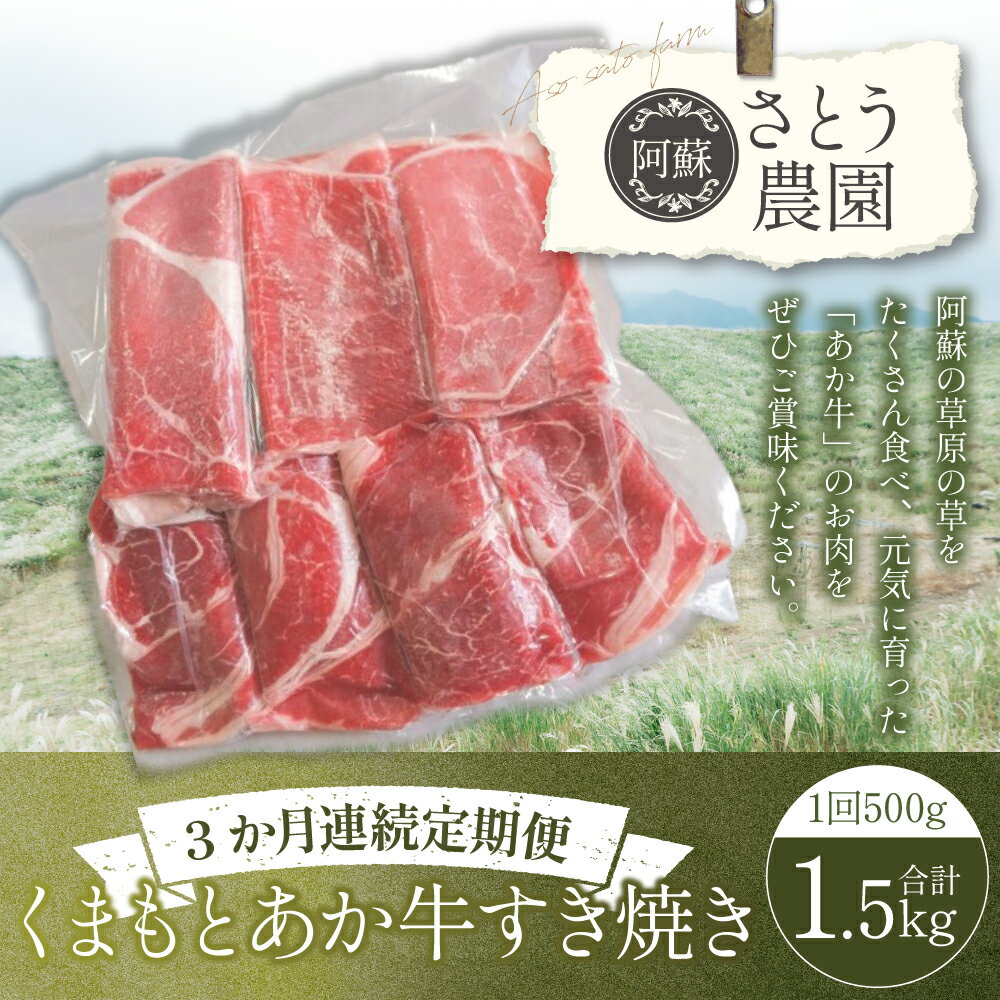 - 【ふるさと納税】【3か月連続定期便】くまもとあか牛すき焼き 1回あたり計500g(250g×2) 計1.5kg(500g×3回) 1ヶ月毎 3回 牛肉 お肉 モモ ロース ウデ カタ すきやき すき焼 冷凍 熊本県産 国産 九州 熊本県 送料無料