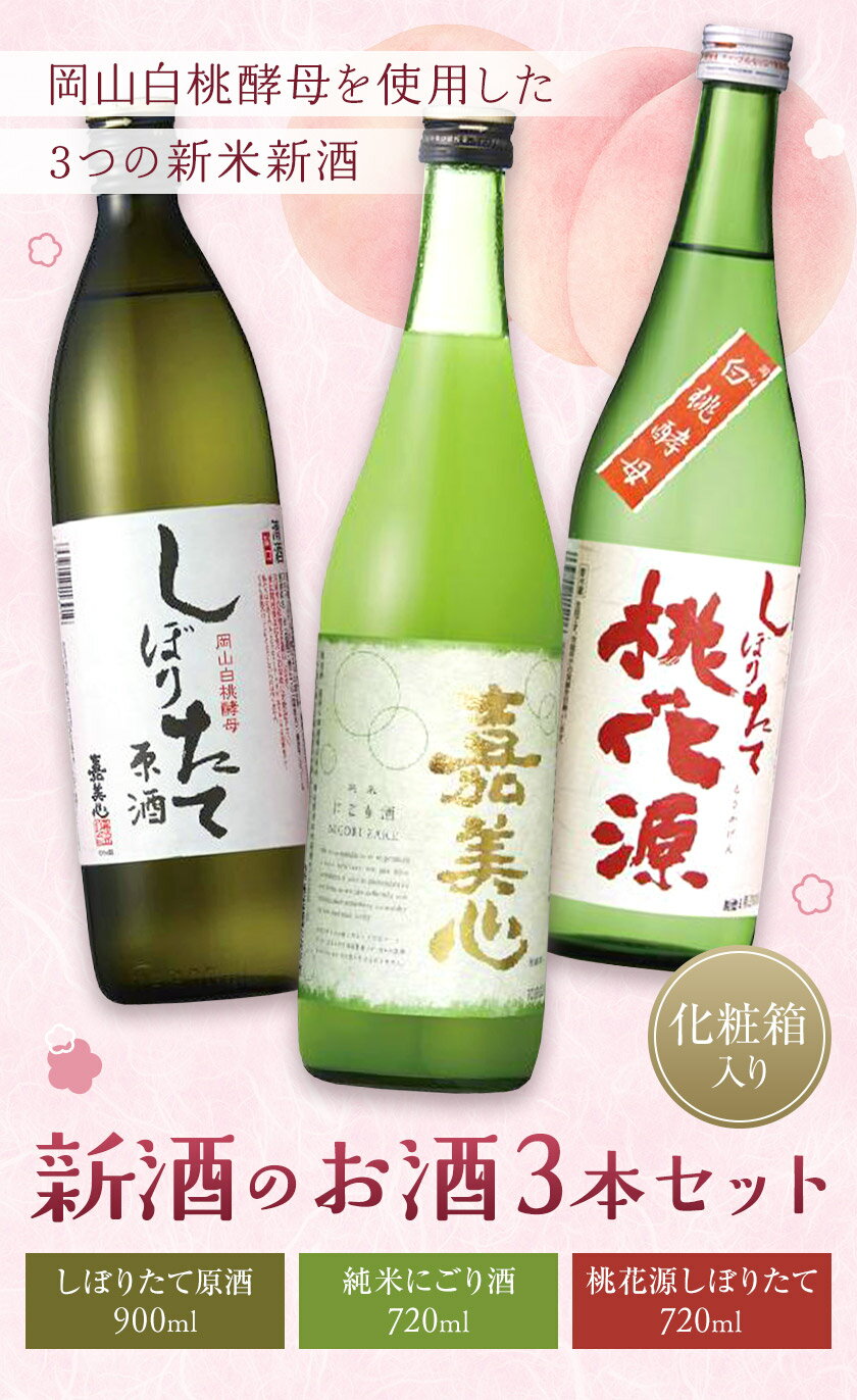 - 【ふるさと納税】新酒のお酒3本セット しぼりたて原酒 900ml 純米にごり酒 720ml 桃花源しぼりたて 720ml 嘉美心酒造株式会社《11月中旬‐12月末頃出荷》 岡山県 浅口市 日本酒 酒 送料無料 純米吟醸原酒 アルコール 岡山白桃酵母 清水白桃