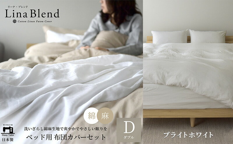 - 【ふるさと納税】寝具 日本製 布団カバー 4点セット ダブル リネン & コットン 麻 綿 洗いざらし ブライトホワイト リーナブレンド 極上の柔らかさ 洗いざらし 肌馴染み しなやか 静岡 浜松市