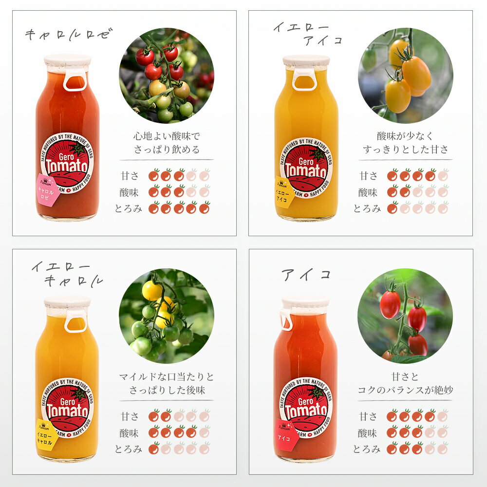 - 【ふるさと納税】飛騨産 100% 無添加 ミニトマトジュース180ml 4本セット(3) 4種類 (アイコ、イエローアイコ、キャロルロゼ、イエローキャロル)(各1本)ギフト 贈り物 プチトマト プレゼント 贈答 とまと 飲料 野菜飲料 トマト トマトジュース 野菜ジュース 無塩