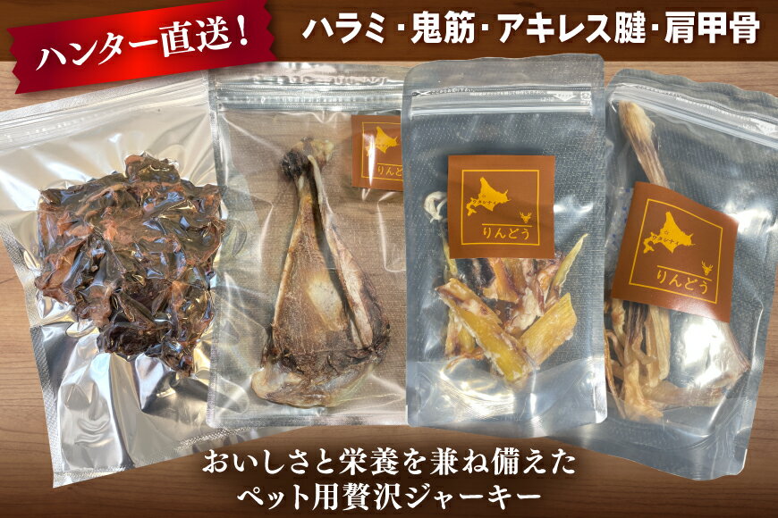 - 【ふるさと納税】 ペット用 エゾシカ ジャーキー 詰め合わせ4種 ハラミ100g 鬼筋30g アキレス腱30 肩甲骨1個 [りんどう 北海道 歌志内市 01227an010] ペット用ジャーキー 無添加 鹿肉