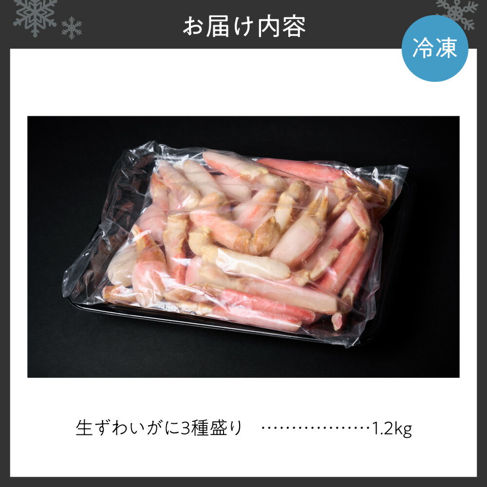 【ふるさと納税】 生ずわいがに ポーション 1.2kg 3種盛り カット済 むき身 セット 棒 爪 爪下 かに ズワイガニ 蟹 ずわい蟹 カニ脚 かにつめ 棒肉 海鮮 魚介類 ごはんのお供 おつまみ おかず お取り寄せ 冷凍 クール便 北海道 札幌市