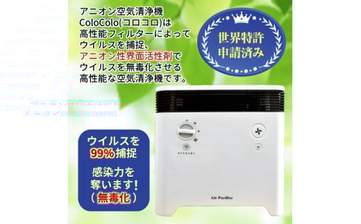 - アニオン空気清浄機コロコロ 10畳用 マイナスイオン搭載 ウイルス・花粉・PM2.5・粉塵対応 交換用フィルター付き