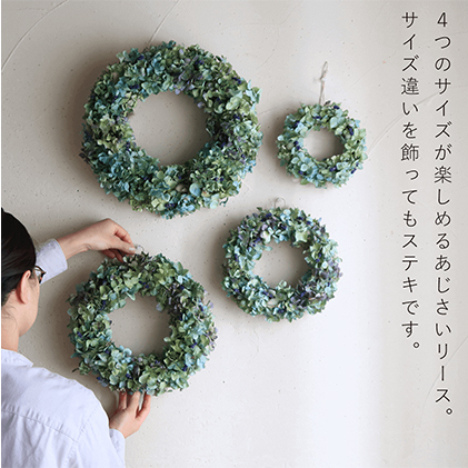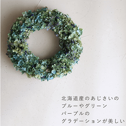 - 富良野 花七曜 大きなあじさいのリース30 ◆ ドライフラワーリース 植物 インテリア 自然 グラデーション 魅力 おしゃれ ナチュラル 北欧インテリア 贈り物