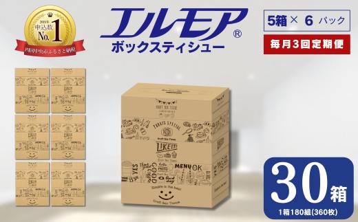 - 【3ヶ月毎月定期便】エルモア ティシュー 30箱 そのまま飾れる 5個ポリ×6パック ティッシュ ティッシュペーパー ボックスティッシュ Kazaru×Krafty ラインアート 日用品 消耗品 備蓄 防災 愛媛県 四国中央市