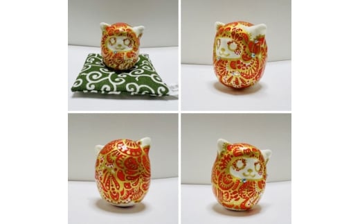 - 世界にひとつだけの手づくり猫だるまセット(猫耳付きだるま・座布団・布袋)【1676719】