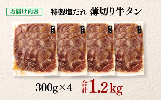 特製塩だれ薄切り牛タン1.2kg 小分け 300g×4パック<1.6-39>味付き BBQ 焼肉 たれ タレ塩ダレ