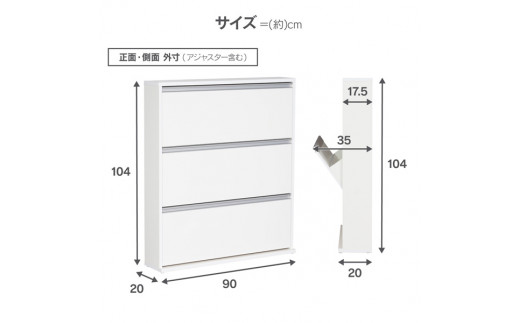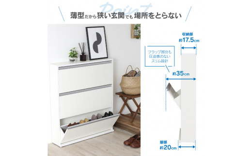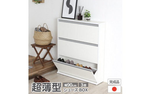 - 木製シューズBOX ガイド板付 【幅90×3段】 薄型で場所を取らないシューズボックス 玄関収納 家具 家具インテリア 21943(SBS-943) 加茂市 川口工器株式会社