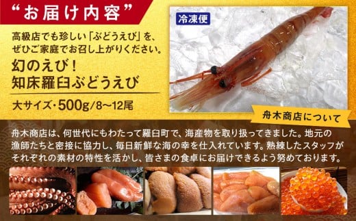 幻のぶどうえび(大・500g /8~12尾前後) エビ 海老 ブドウエビ 羅臼町 北海道 魚介類 魚介 海産物 冷凍 刺身 生産者 支援 応援