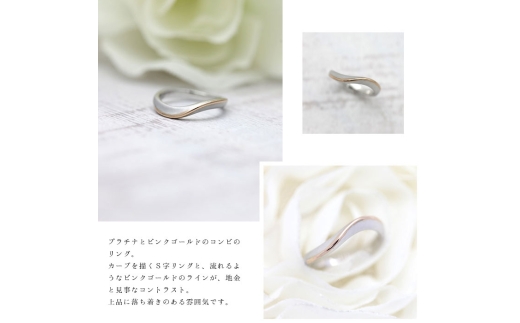 - 結婚指輪 プラチナ PT900 K18PG ピンクゴールド コンビ ウェーブ リング レディース 18金 18k S字 つや消し ホーニング 【268-ptpg】※15号 ALPAZ155-15